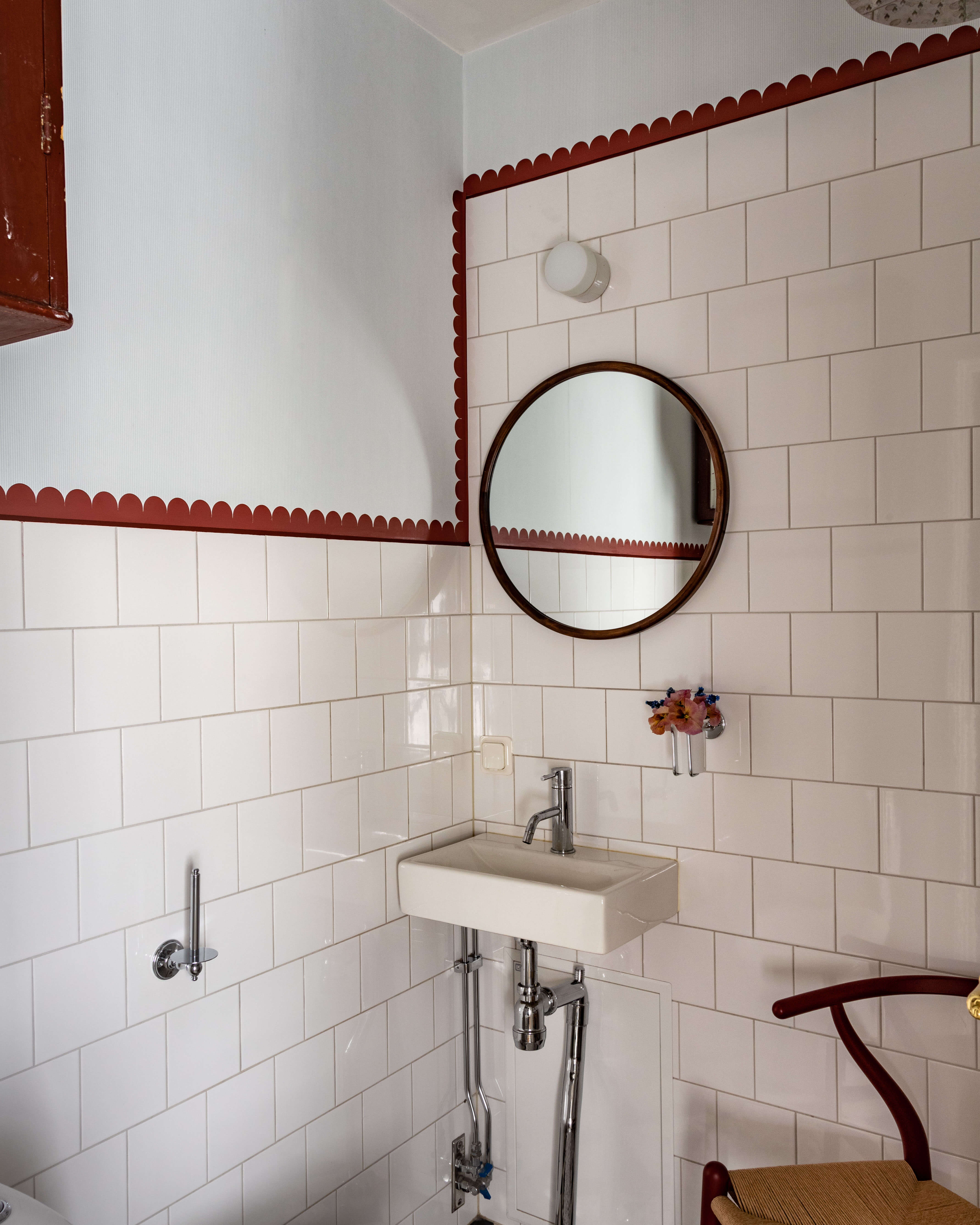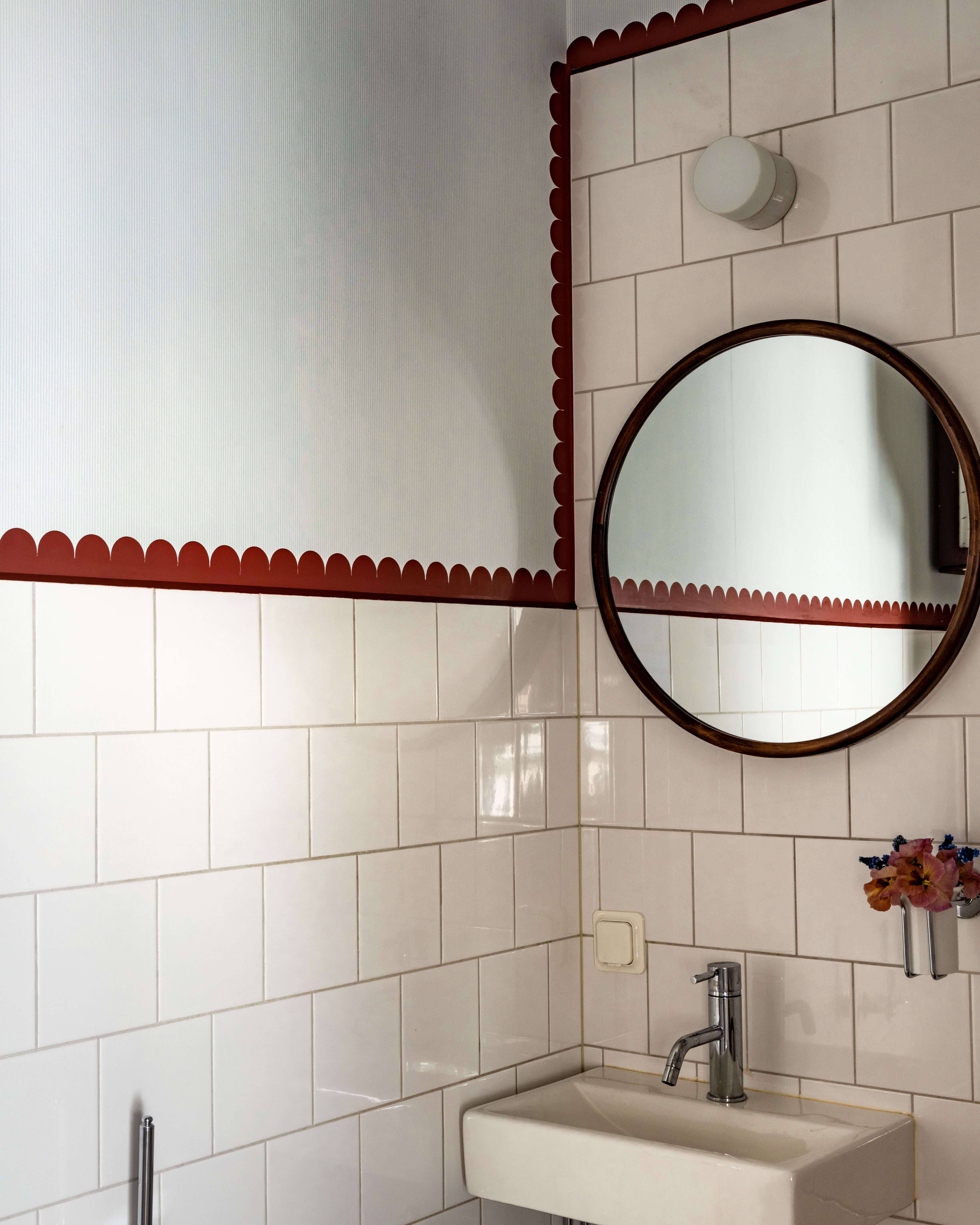 Vi är glada att återigen samarbeta med inredningsprofilen, fotografen och stylisten Emma Johansson. Med sin unika känsla för färg och mönster har Emma återigen använt sin kreativitet för att ge liv åt våra tapeter. Denna gång har hon med sitt öga för detaljer tapetserat sin hall med det rutiga mönstret Lotta och en gästtoalett med randen Arvid, båda från kollektionen Småmönstrat. Dessutom har hon på ett lekfullt sätt skapat en vågig bård av tapeten Ingrid Marie från kollektionen Akvarell.