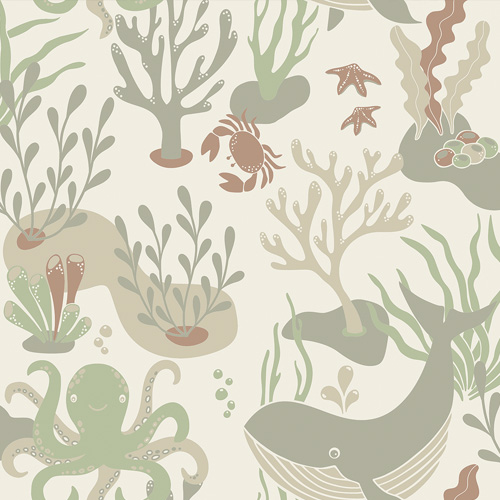 Ett lekfullt mönster som tar oss ner under ytan där vad som helst kan hända! En val pratar med en glad bläckfisk och sjöstjärnorna ser på.
