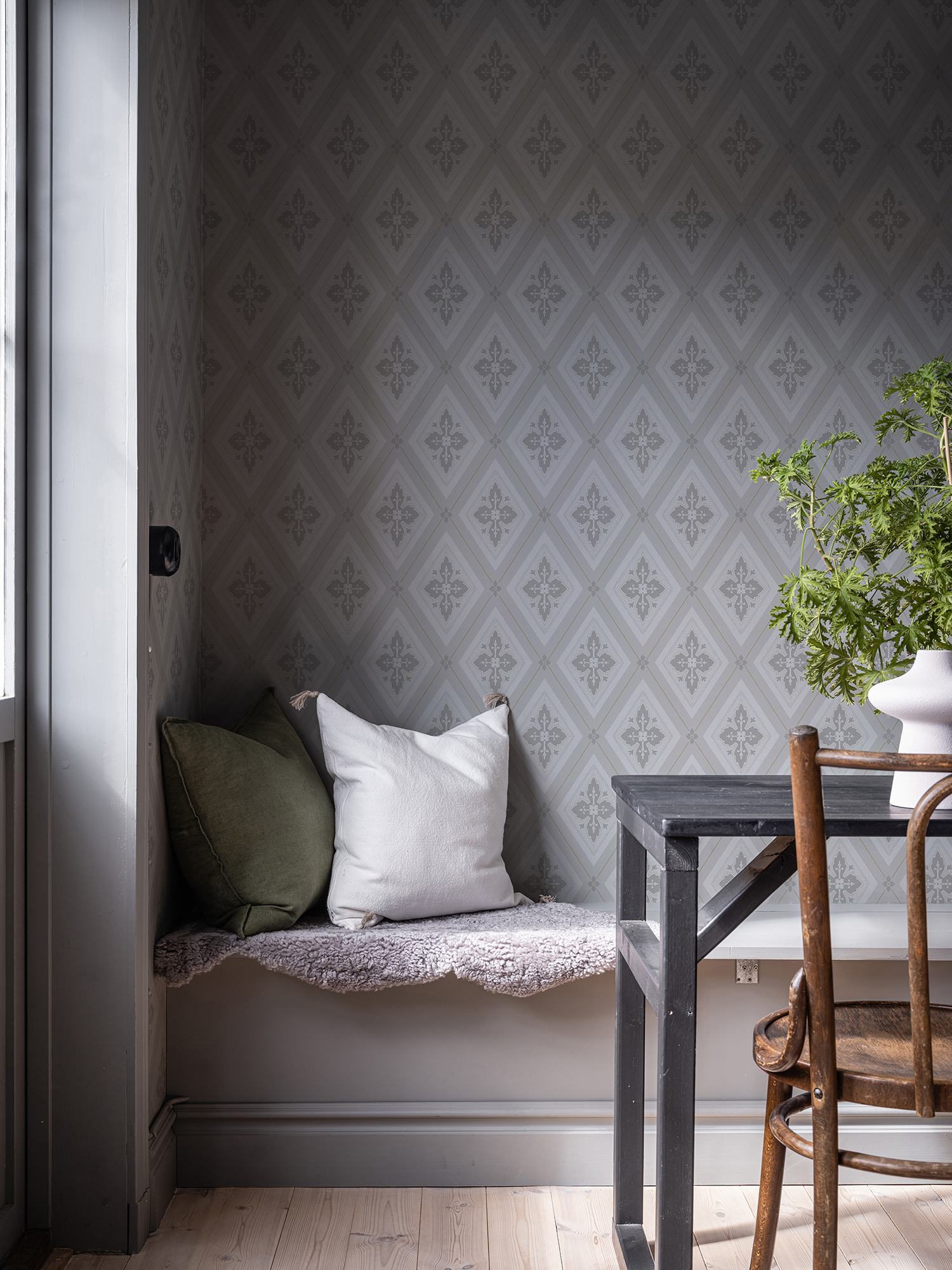 Vi är medvetna om att många önskar NCS-koder för våra tapeter för att kunna matcha dem med andra ytor, såsom snickerier. Därför har vi nyligen inlett ett samarbete med NCS för att tillhandahålla den närmaste NCS-koden för varje tapet i våra två senaste kollektioner, Akvarell och Småmönstrat. Vårt mål är att fortsätta inkludera NCS-angivelser i alla kommande kollektioner.
