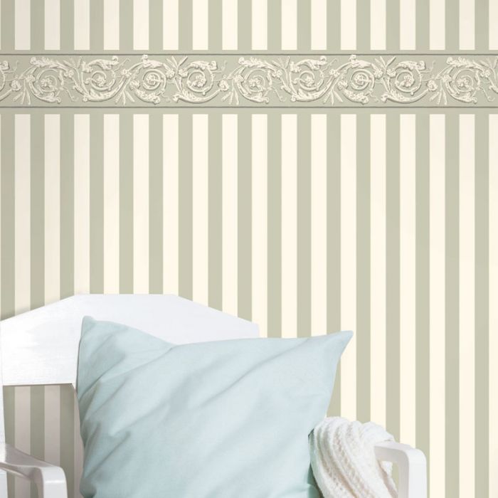 Till det enklaste och självklaraste av alla tapetmönster hör randen. Av olika bredd och i olika kombinationer. Ofta med textila motsvarigheter.