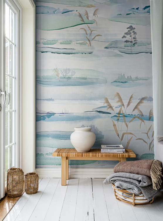 Inspirationen till Hav & Land har hämtats från Östersjökusten. En kust som finns bara ett norrländskt stenkast från Duros tapetfabrik i Gävle.
