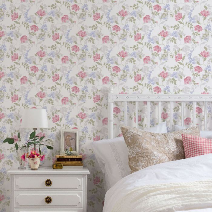 Malin är ett drömmigt och romantiskt mönster som passar fint till både helrum och fondvägg. Tapeten ger rummet en lugn och fridfull atmosfär med känsla av barndomssomrar och sommaräng.