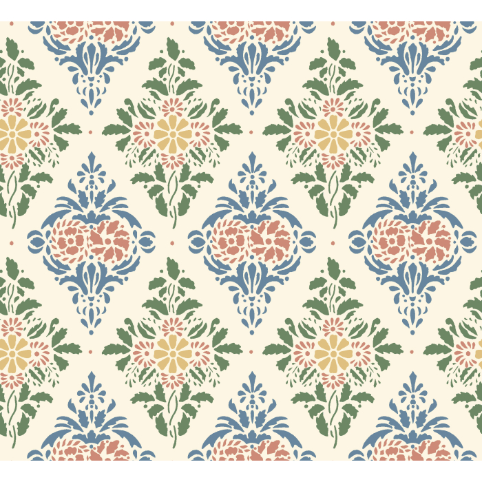 Målaren Jonas Wallström föddes i Arbrå år 1798 och förblev bosatt i sin födelsesocken genom hela sitt liv. Han utförde många rumsdekorationer i sin hembygd, bland annat på gården Gästgifvars i Vallsta, vars motiv har inspirerat den här tapeten. Wallström föredrog att arbeta med schabloner och använde en ren och tydlig färgskala i sitt arbete.