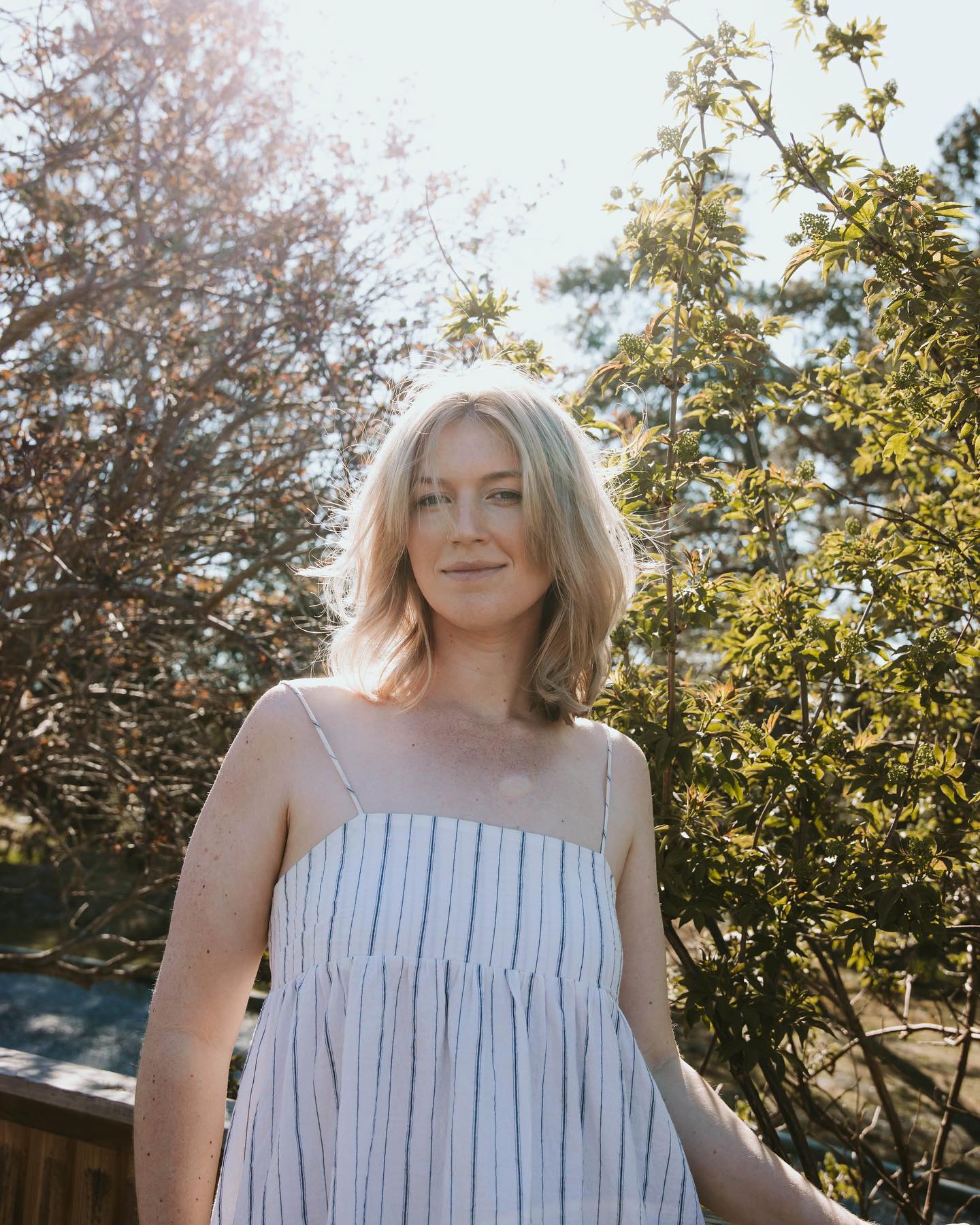 Flora är klädd i blommande mönster som för tankarna till sommar, fågelsång och en doft av regn. När vi öppnar fönstret mot trädgården släpper vi in en vind som får gardinerna att bölja och skapa mjuka skuggor över fint tecknade bladmönster.